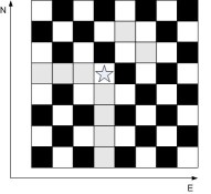 • The knight moves the following way: first he moves 2 squares in horizontal or vertical direction and then 1 square in the perpendicular direction. In contrast to rooks, figures on the way of knight do not interfere with its movement. Two knights attack each other if they can move to each other's cells.